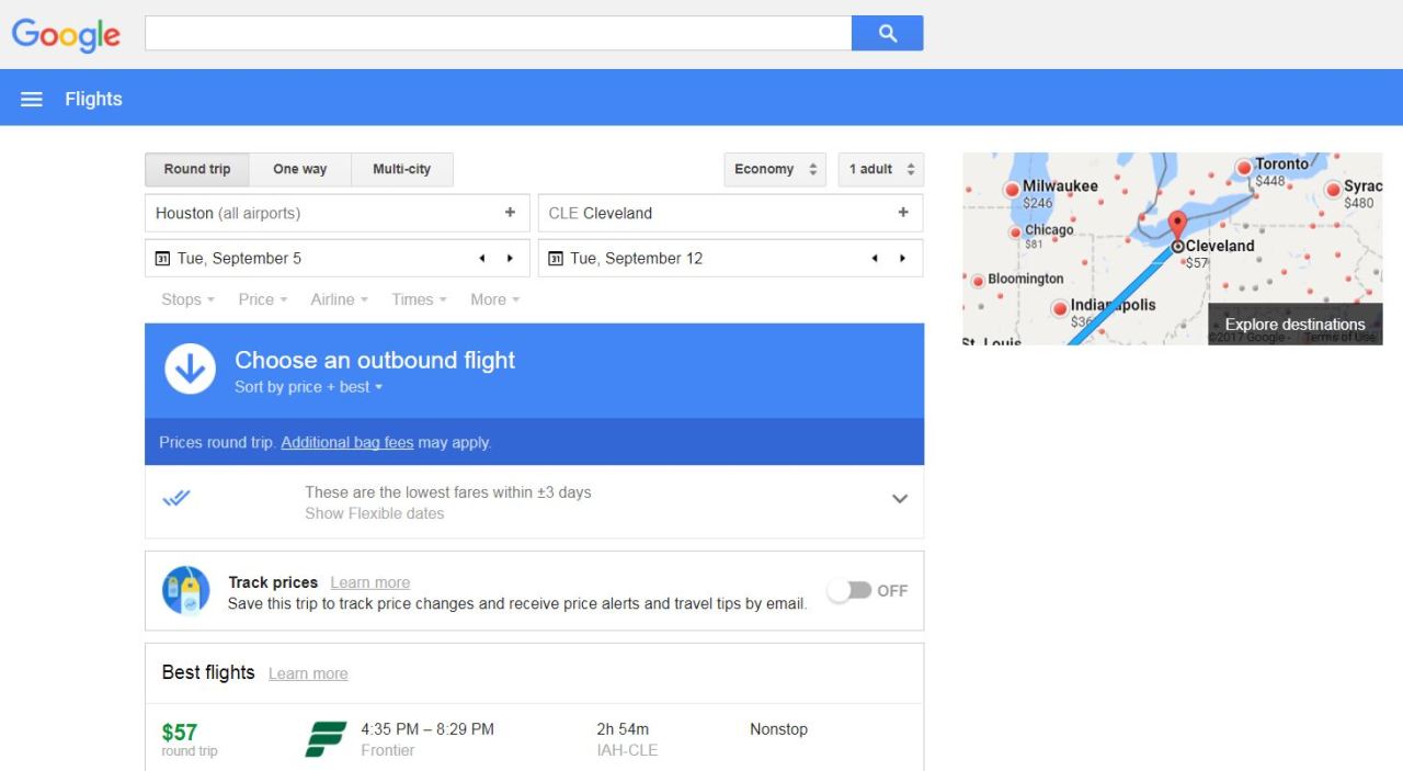 Houston to Cleveland Ohio for $57 Round Trip! Best price ever! And its just a short drive to Canada so you could go and check out Niagara Falls! This price is from September 5th through September 12th, but this price is available on other days in September as well.