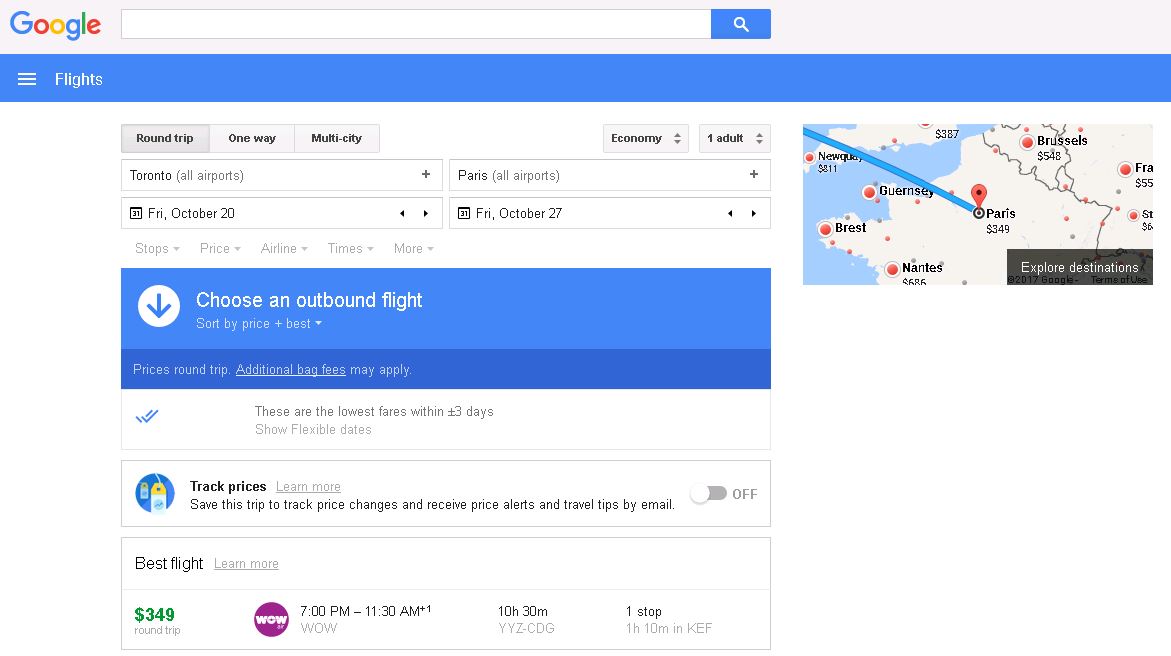 Toronto to Paris – $349 Round Trip available on Oct 20th – 27th with WOW Airlines! Other dates are available for under $400 but those dates are the best price. Please keep in mind these prices are in American dollars. Still is a steal! On Google.ca/flights the price is shown as $440 CND.