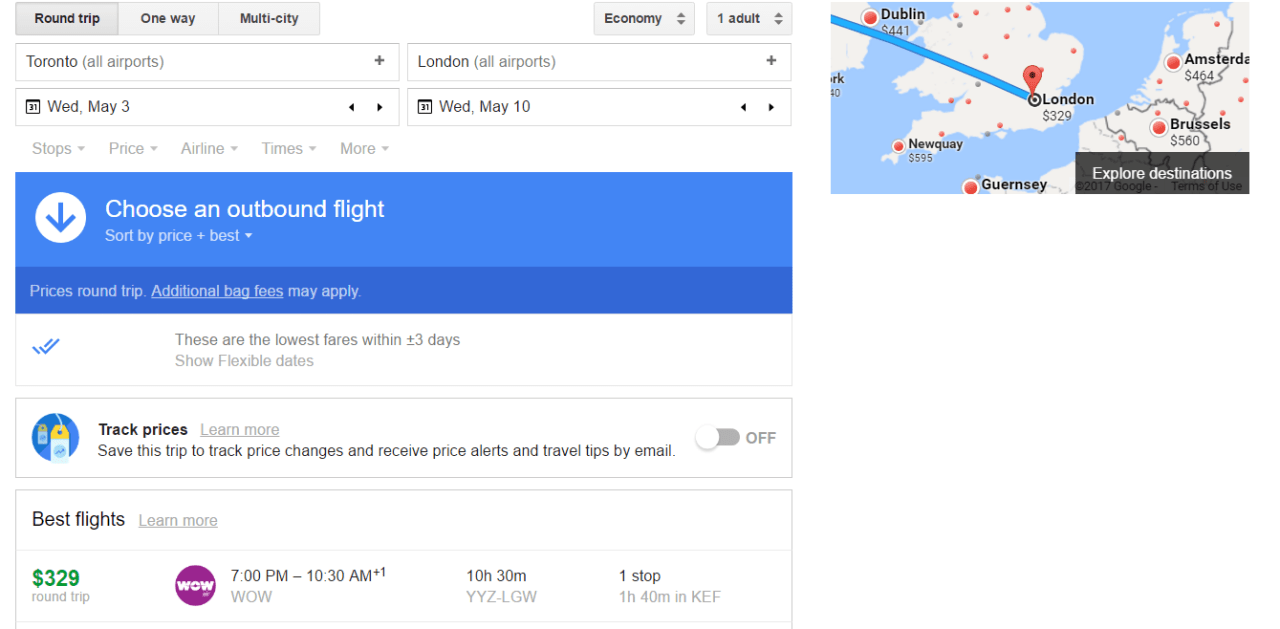 Toronto to Paris – $349 Round Trip available on Oct 20th – 27th with WOW Airlines! Other dates are available for under $400 but those dates are the best price. Please keep in mind these prices are in American dollars. Still is a steal! On Google.ca/flights the price is shown as $440 CND.